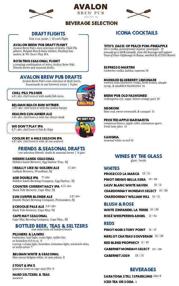 Ask Which of Our Delicious Avalon Brew Pub Beers & Other Favorites Are Currently Rotating on Draft.-